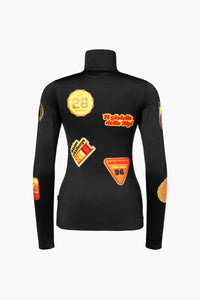 - Allover-Print und gestickte Abzeichen