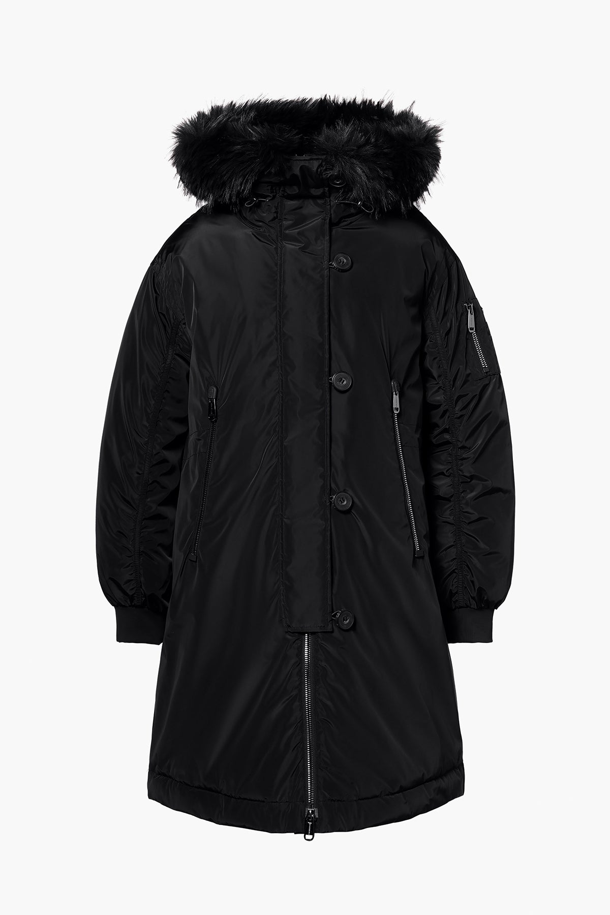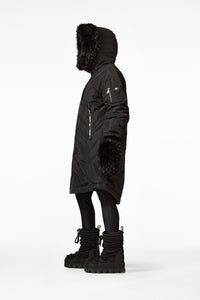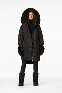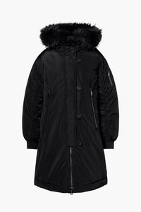 Down parka with faux fur border
