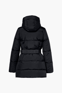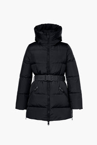 Veste matelassée en duvet avec capuche et ceinture assortie