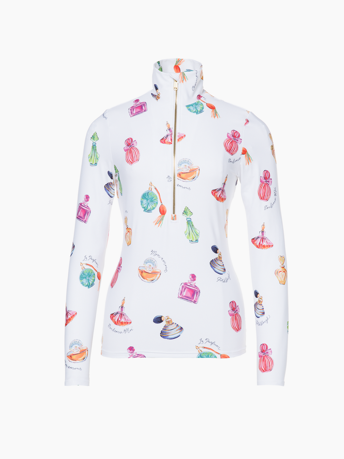- Powerstretch interlock with perfume bottles print